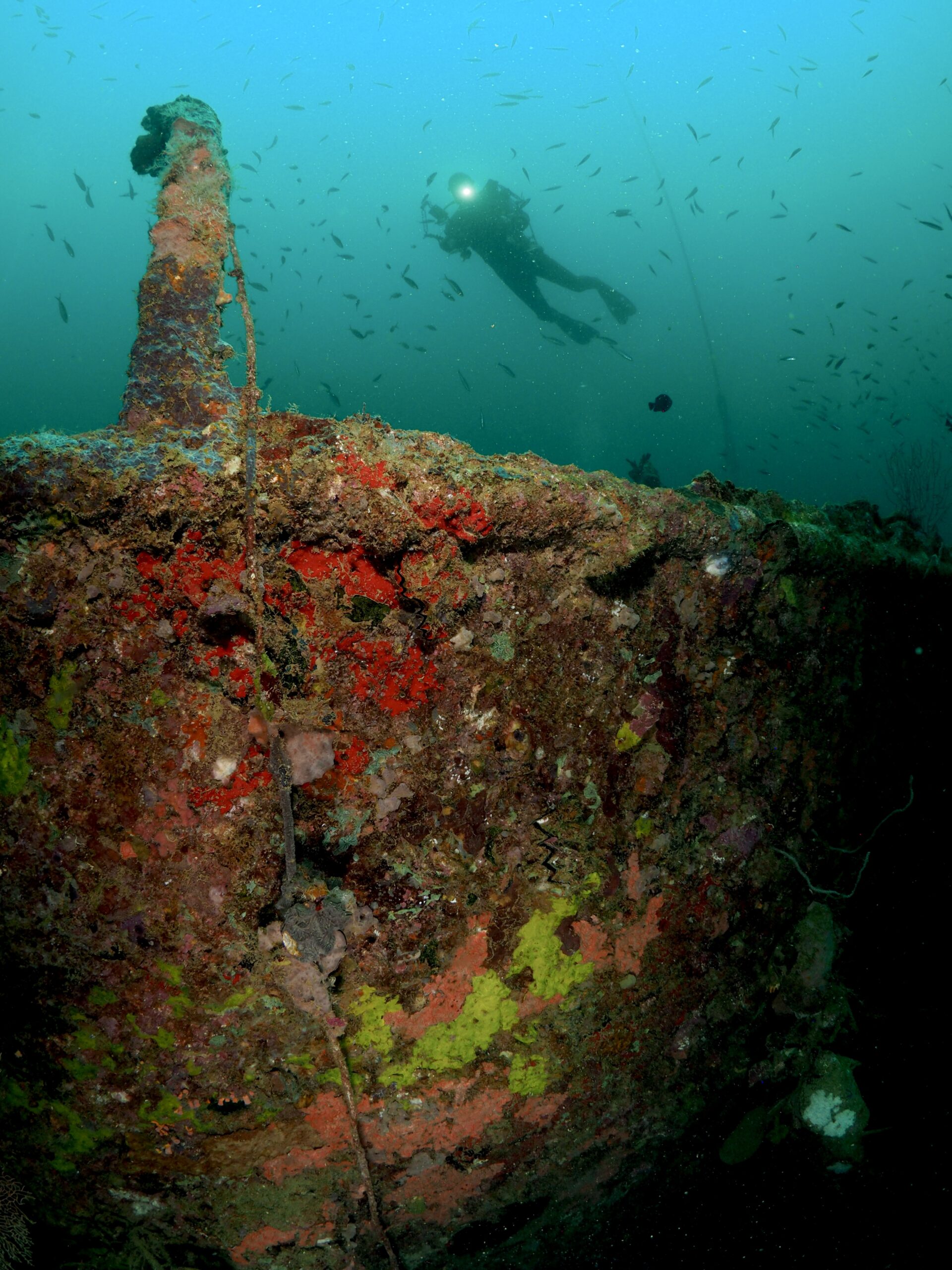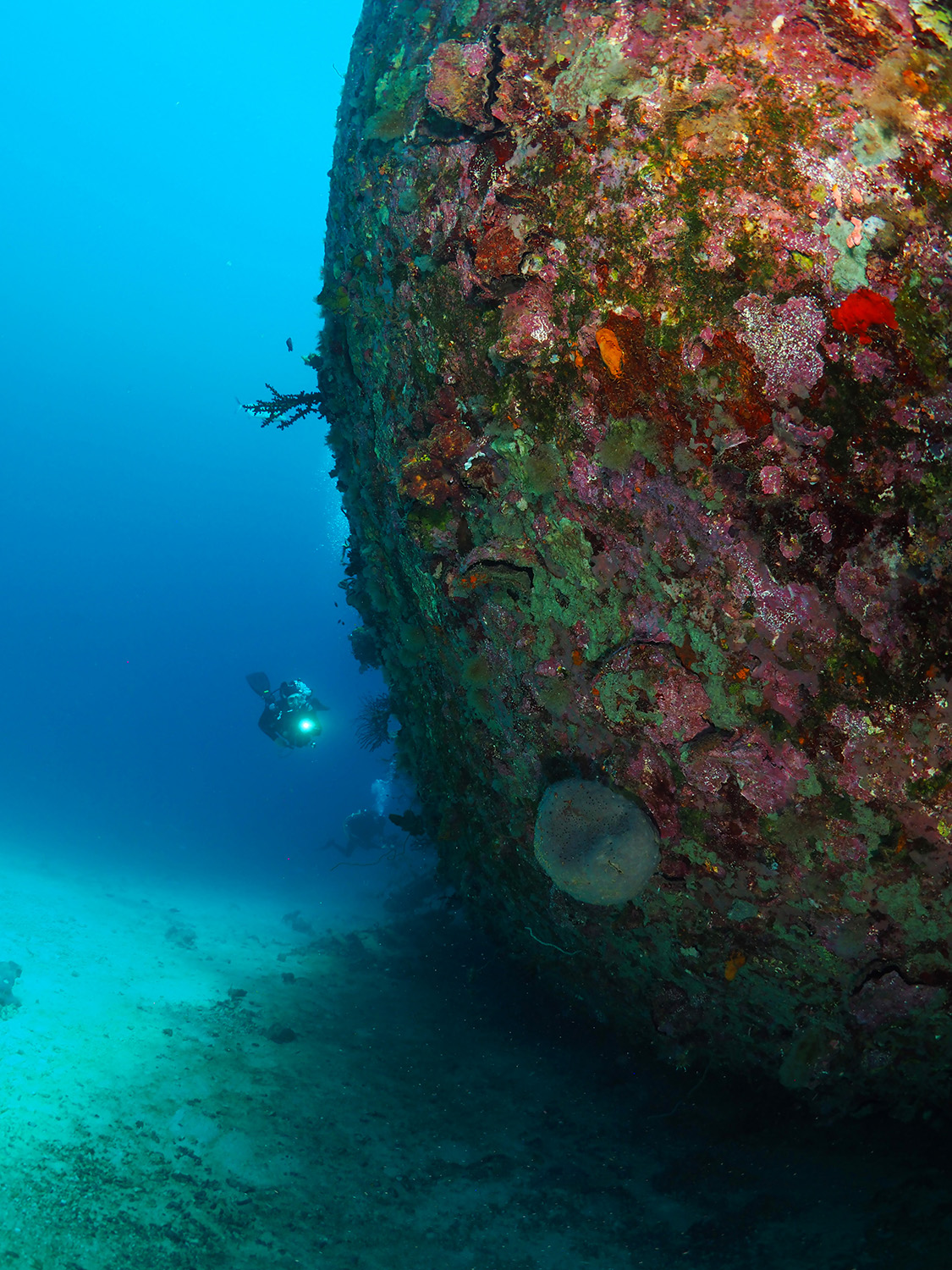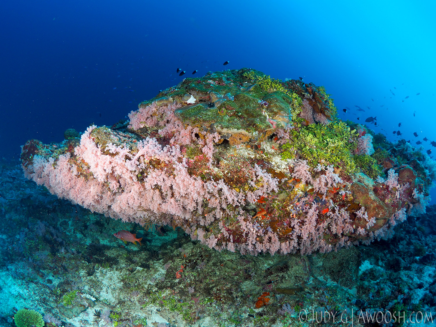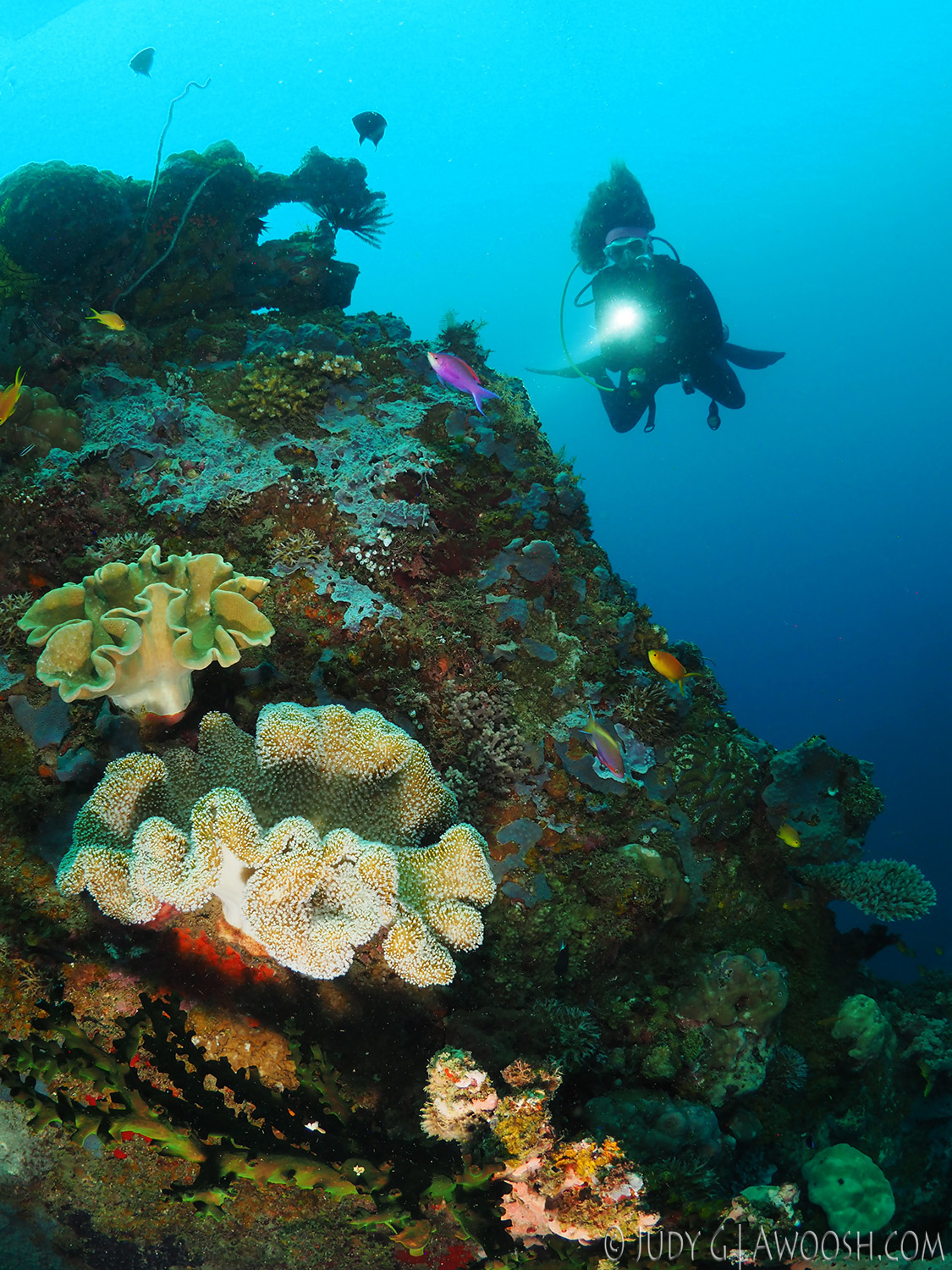 We dove here, there, and everywhere — too many dive sites to list individually. I personally did 30 dives in the 9 diving day trip, and there were more on offer that I sat out (the night dives). All of the gang (except one newer diver) dove Nitrox, which was consistently delivered at 32%, and the Bilikiki wisely includes it in their trip price at no added cost. Nitrox (air enriched with extra oxygen) is pretty much essential on these multiple dives per day, over multiple days of diving, trips.
