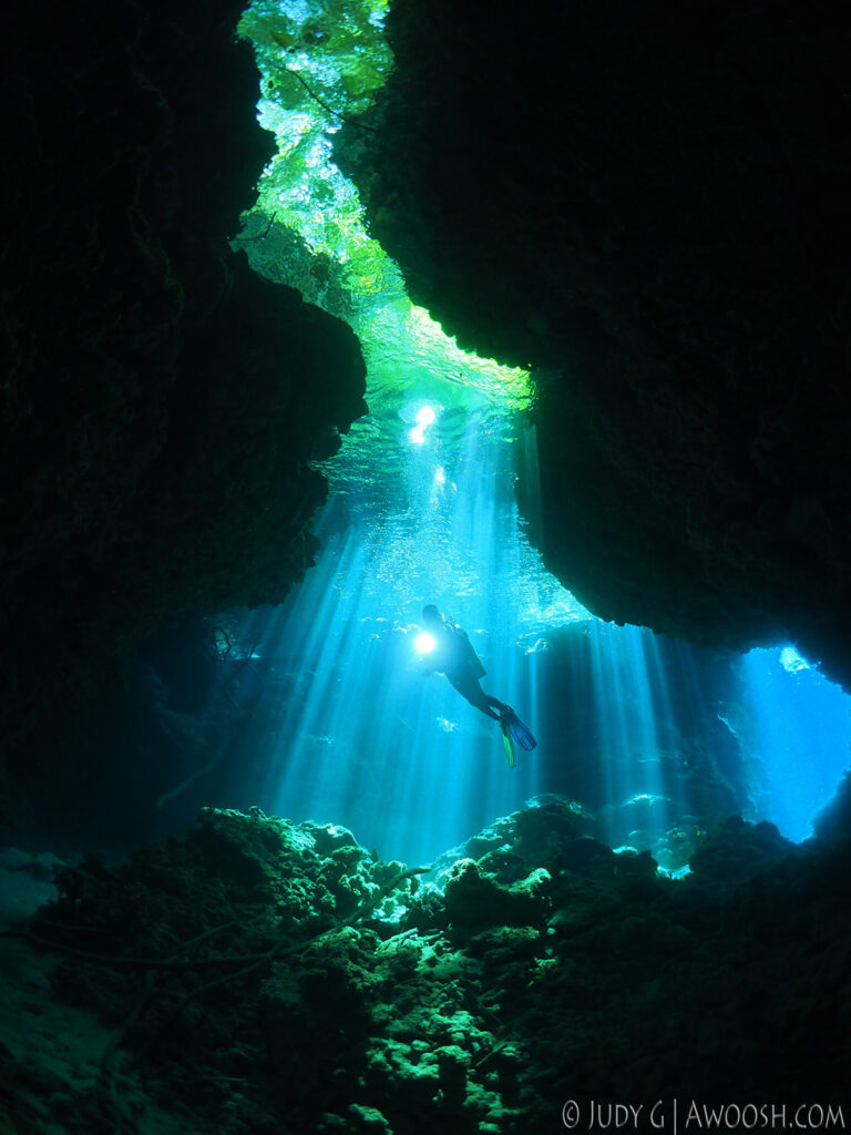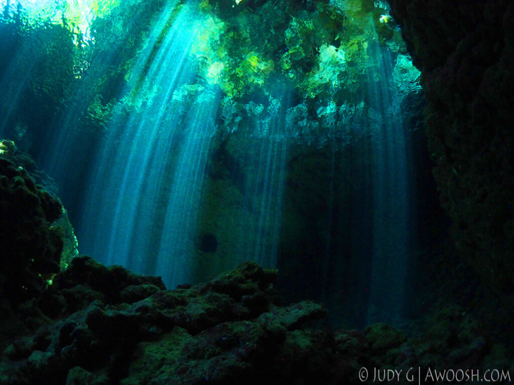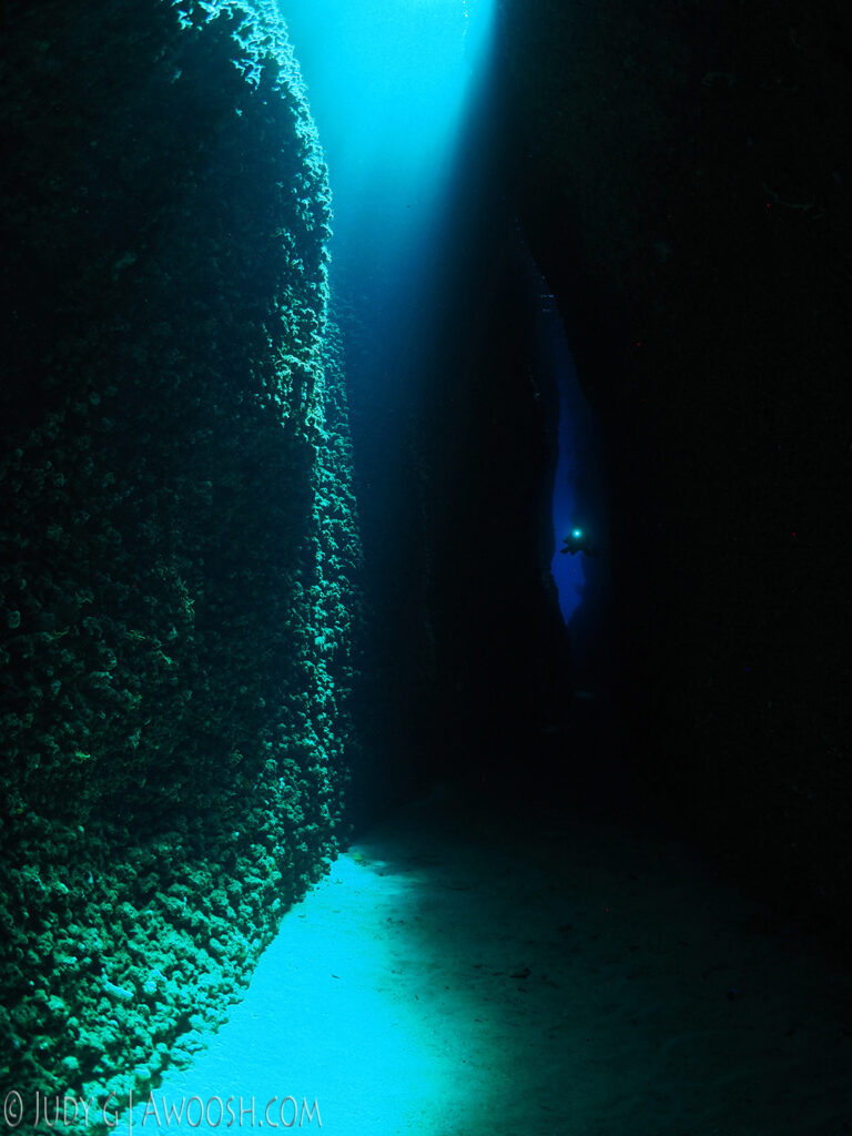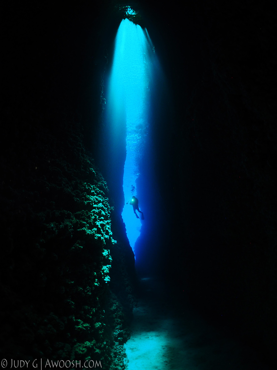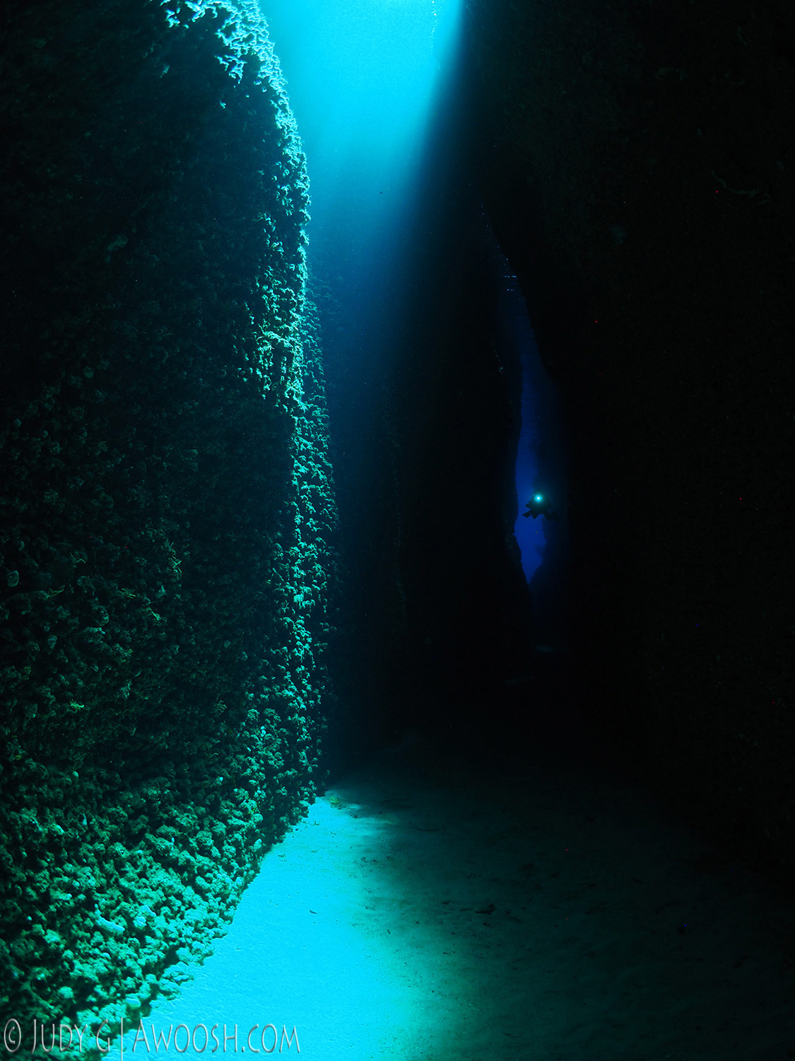 The Solomons have some gorgeous underwater topography for diving: in addition to fringing coral reefs, we dove some walls, seamounts, several World War II wrecks, and we dove two sites that were absolutely spectacular — one was a slot canyon, and the other was a series of caverns and swim throughs — both made even more special when overhead god rays lit the vertiginous walls and danced prettily on the sandy floors.
