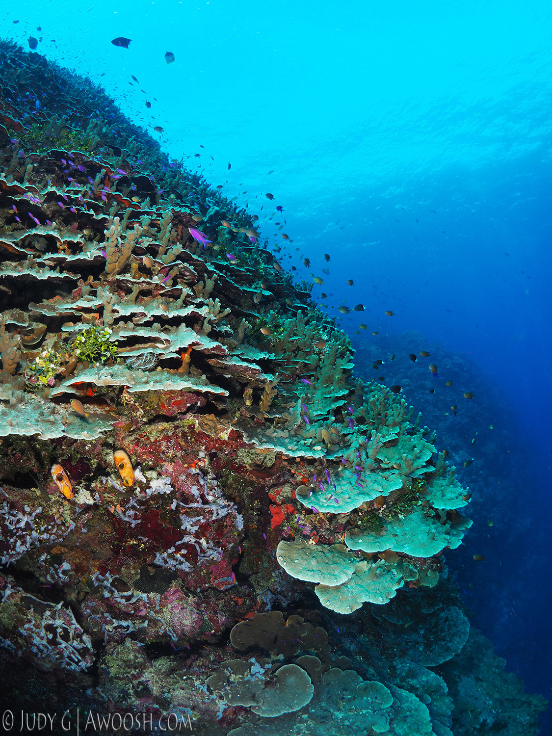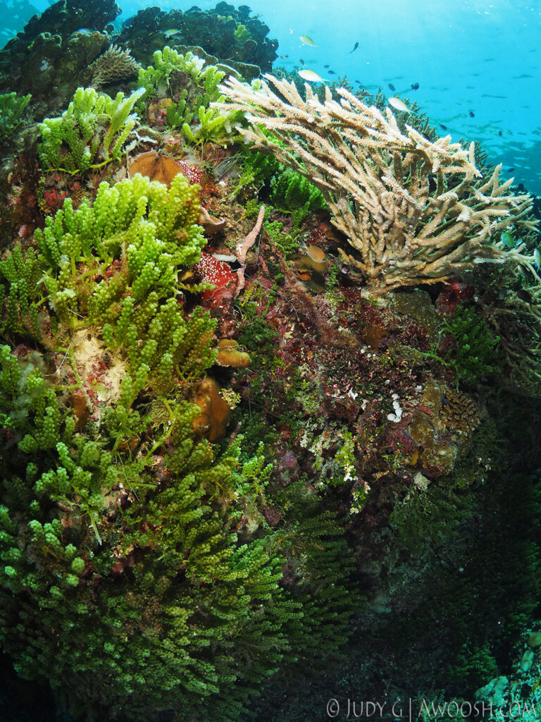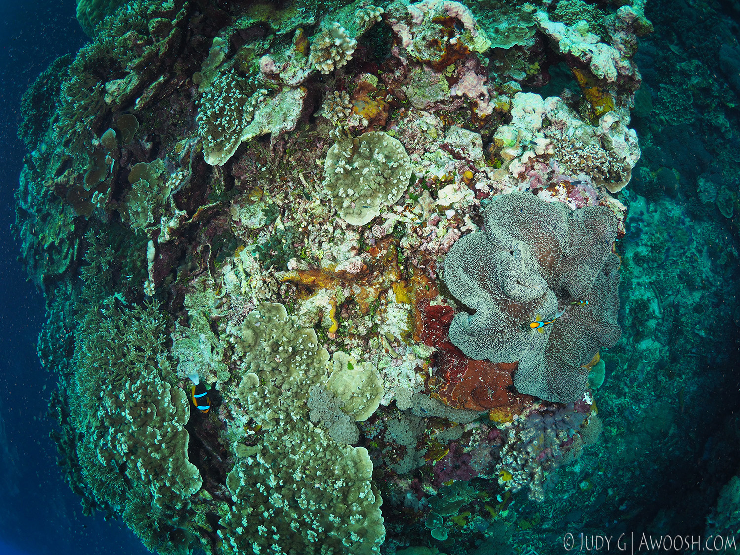 The reefs were generally in good shape with a pretty wonderful critter diversity. There is very little diver pressure in the Solomons in the more remote locations (given that the Bilikiki is currently the only boat diving most of them). However, a few coral reefs we dove were looking very battered, and in a couple of areas there was significant coral die off and algae infestation — we were told that this was due to storm damage. We only saw minimal evidence of coral bleaching on this trip.