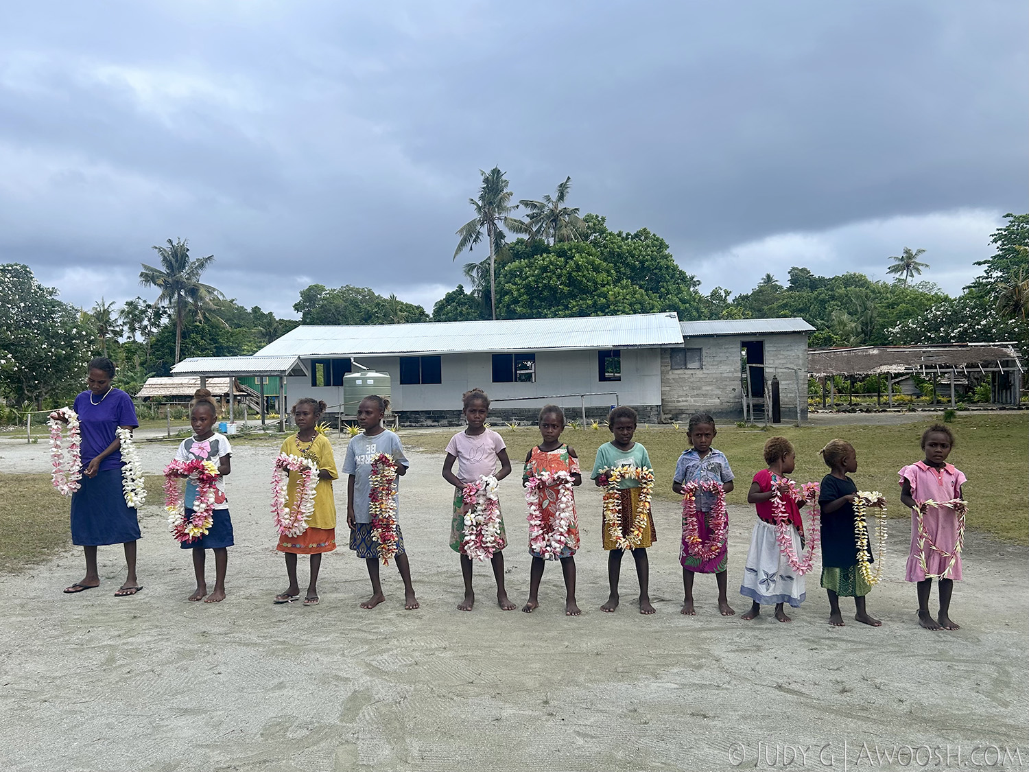 The Bilikiki offered several village visits on our itinerary. One was to a village well known for beautiful wood carving, and several in our group bought beautiful pieces to bring home with them. Having zero extra room in our baggage, Mr G and I gave the shopping excursions a miss, but we enjoyed going ashore to tour a small remote island village and to meet some of the locals there. It is a very modest life they lead – most either sustenance fishing or are involved in coconut growing and harvesting. Basic health care is provided for all Solomon Islanders by the the government, but for these people living remotely to large population centres, any ailments are likely to be treated by an occasional visiting nurse. Serious medical issues must be evacuated by boat to Honiara, where the central hospital is located. A couple of doctors in our group visited this facility, and said that the conditions were difficult for patients there, with only rudimentary care, (for example cancer treatment is not available). This one hospital services the entire sprawling population of the Solomon’s, which is about 800,000.