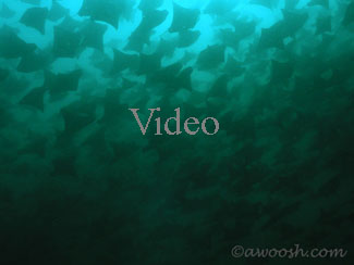 Holy cow-nosed rays Batman! A veritable swarm of the things - heading straight over our heads. I have been privileged to do a lot of dives, in a lot of places around this spinning ball that we call Earth, but I have never seen anything like this. The herd of rays stampeded over our heads, blocking the light with their dense formation. The show went on for several minutes, and by my estimation, the animals numbered in the thousands. |